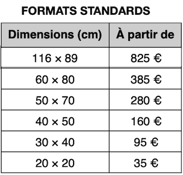 Consulter ici les tarifs par toile (figure, paysage, marin) : 📂Grille complète des tarifs par toile